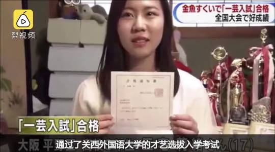 金魚すくいの特技を披露し、関西外国語大学に芸選抜枠で合格した。