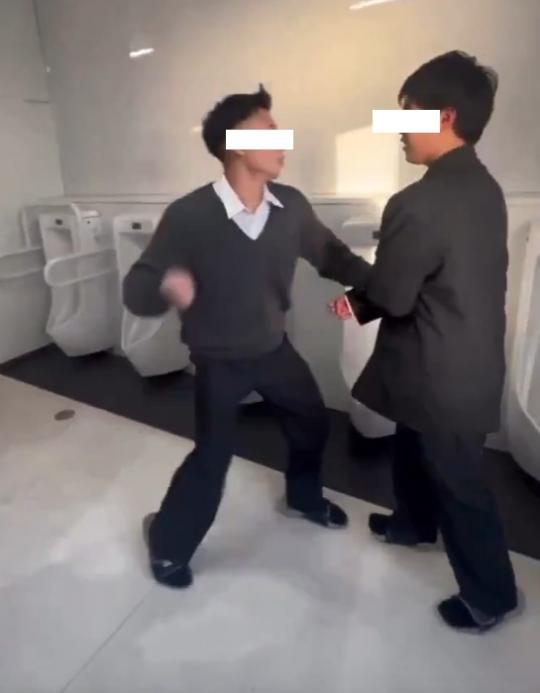 動画は9秒間で、校内のトイレで1人の生徒が、無抵抗の生徒の顔面を2度拳で殴り、後頭部を足蹴りする様子や、複数の生徒が周囲ではやし立てている状況が映っている。