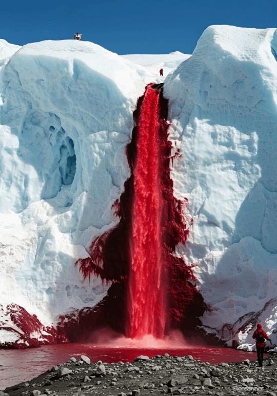 南極大陸の沿岸部、マクマード・ドライバレーに位置する「ブラッド・フォールズ」は、その不気味な外観から世界的に知られる自然現象だ。氷河の裂け目から赤い液体が流れ出す様子は、まるで血が滴り落ちているかのように見える。