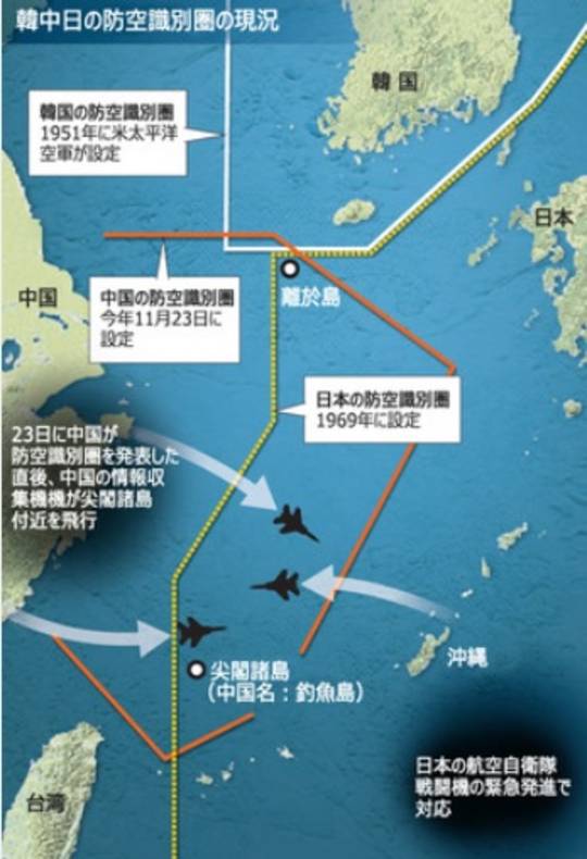 これに先立ち、米国は中国の防空識別圏を認めず、中国側に飛行計画書を提出しない意向を示した声明を発表している。