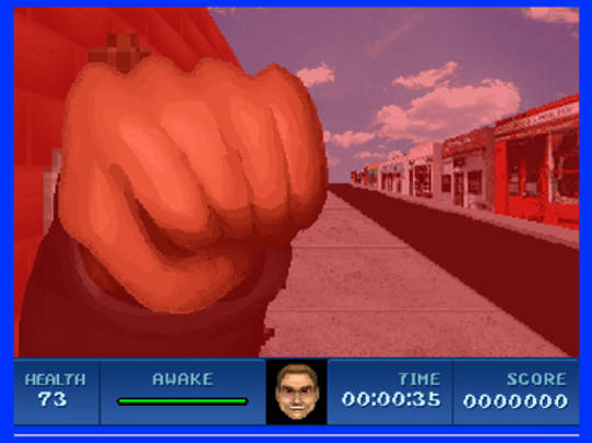 ゲーム内容は超シンプル。行列に並び徐々に眠気に襲われるキャラクターを、眠らせないようにパンチするだけです。殴ると体力が減り、次第にキャラクターは血まみれになります。体力が尽きる、あるいは眠ってしまうと、無駄に怖いキャラクターの叫び声とともにゲームオーバー。