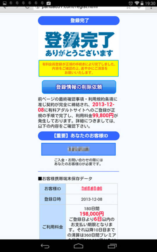 エロ動画をあさってたら急に端末情報が保存されましたとか出て、このページに飛んだ…
