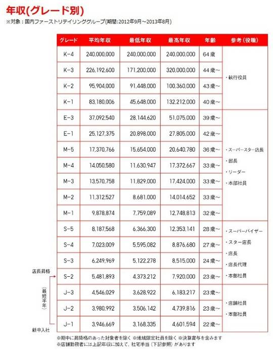 ユニクロを運営するファーストリテイリングが「年収テーブル」を公開