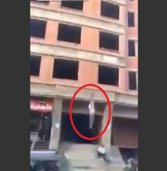 建設中のビルの屋上に設置するタワークレーンで上がる作業員ということです。