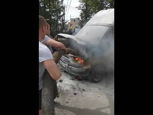 ショッセイナヤ通りを通りかがったバキュームトラックの運転手が火災に気付き、すぐに車を停めてホースを取り出し、タンク内のモノを放出!