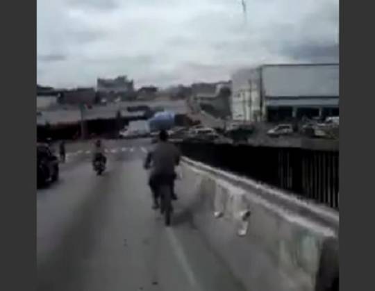 普通はペダルの上に立ち上がってバランス取るんだけど、