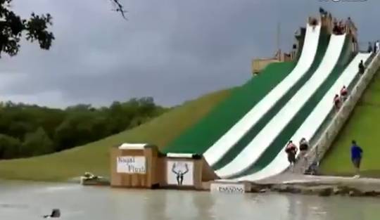 超楽しそうなウォータースライド 着水に失敗した女の子