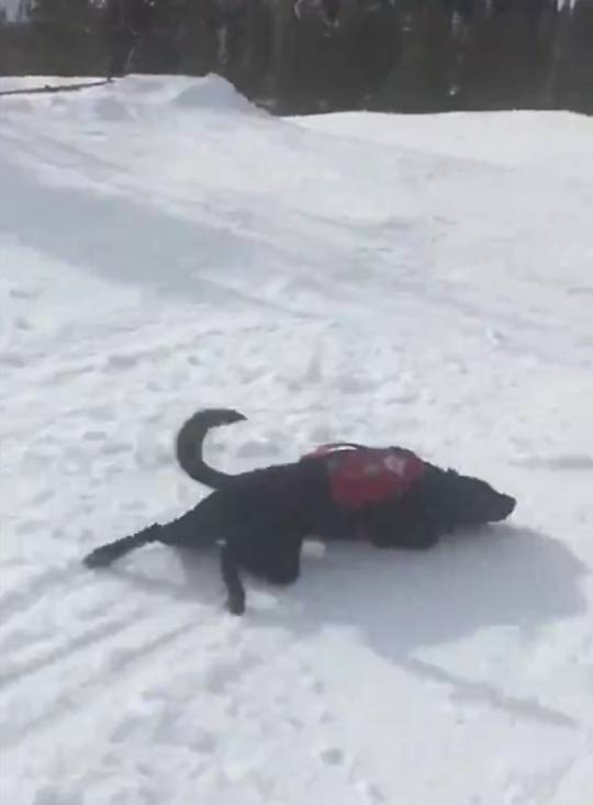 2017年3月9日、アメリカ・カリフォルニア州・レイクタホにて、山岳レスキュー犬のトラッキー(ラブラドール・6歳)が雪の上でスライディングして遊ぶ動画がFacebookに投稿され話題になった。