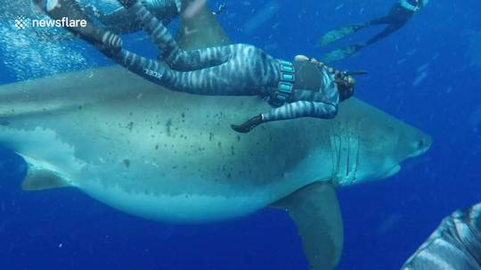 Stunning footage shows divers swimming with 20-foot-long great white off Hawaii coast