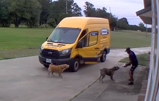 US dogs chase Texas FedEx driver back into his van