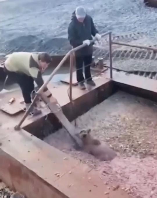 【ロシア】工場の廃棄物に子グマが転落 作業員が救出