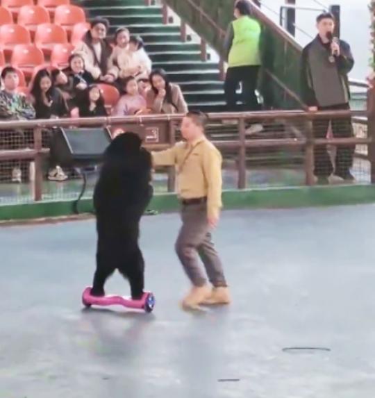 拡散された動画には、黒クマがショー終了直後に飼育員へ近づき、突然食べ物を奪おうとするような動きを見せた瞬間が映っています。周囲のスタッフはすぐに道具を使ってクマを引き離し、事態の収拾に当たりました。