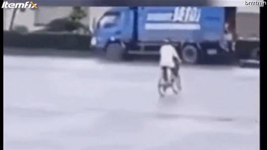 道路を横断しようとして自転車を失うサイクリスト
