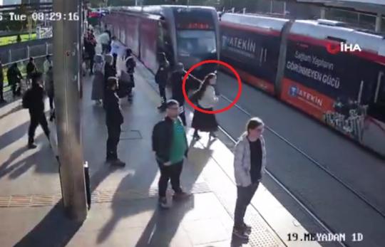 2025年10月14日、トルコ中部の都市カイセリで、イヤホンを着けたまま線路を横断していた若い女性が、接近していた路面電車にはねられそうになったところを、間一髪で警備員が救出した。