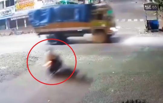 【インド】2人乗りバイク、トラックと衝突し即死 ノーヘルで走行中に事故