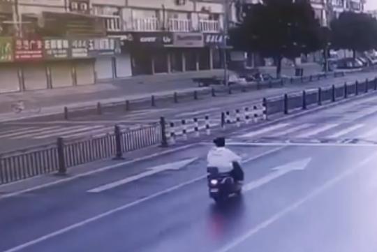 安徽省*州市で、スクーターを運転していた男性が転倒した直後、後方から走行してきた乗用車に巻き込まれ、車にひきずられる事故が発生した。