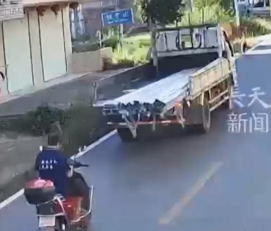2025年10月30日、中国・江西省于都市で、スクーターを運転していた男性がスマートフォンに気を取られ、前方に停止していたトラックに気づかず衝突する事故が発生した。