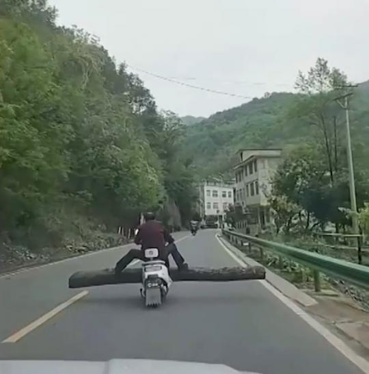 【中国】バイクで巨大な木を運搬 車道ふさぐ危険走行が物議
