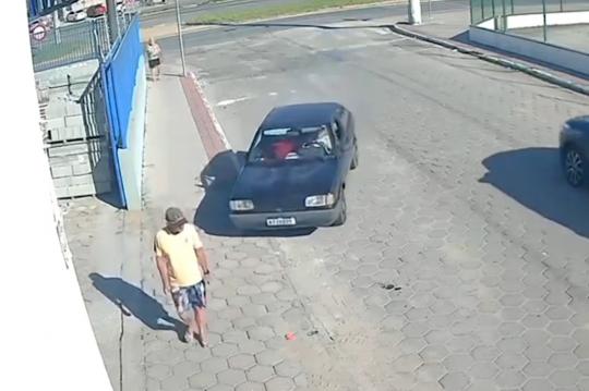 2026年4月23日、ブラジル・エスピリトサント州北部で、高齢の男性が歩道上で車にはねられ、壁との間に脚を挟まれる事故が発生した。