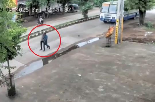 2025年9月5日、インドで歩行者の男性2人が走行中のバスにはねられる事故が発生しました。