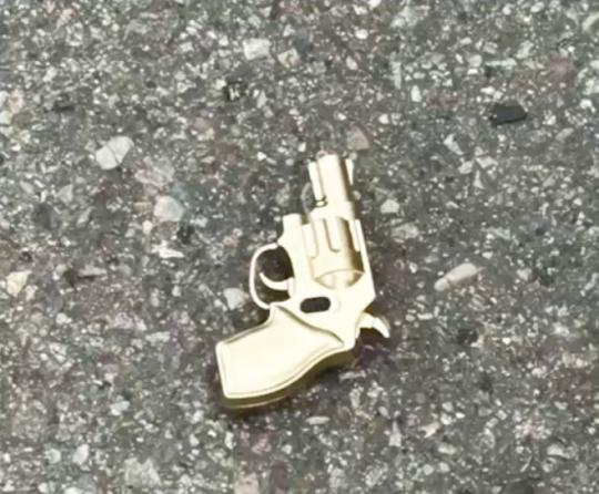 現場で押収されたのは、リボルバー拳銃に似せて製造された金色のライターだったことが判明した。