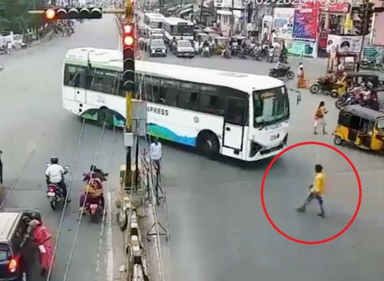 インド・テランガーナ州ハンマコンダ市で2月19日、道路を横断していた若い男性が路線バスにはねられる事故が発生し、男性は搬送先の病院で死亡した。事故の瞬間は現場付近の防犯カメラに記録されていた。