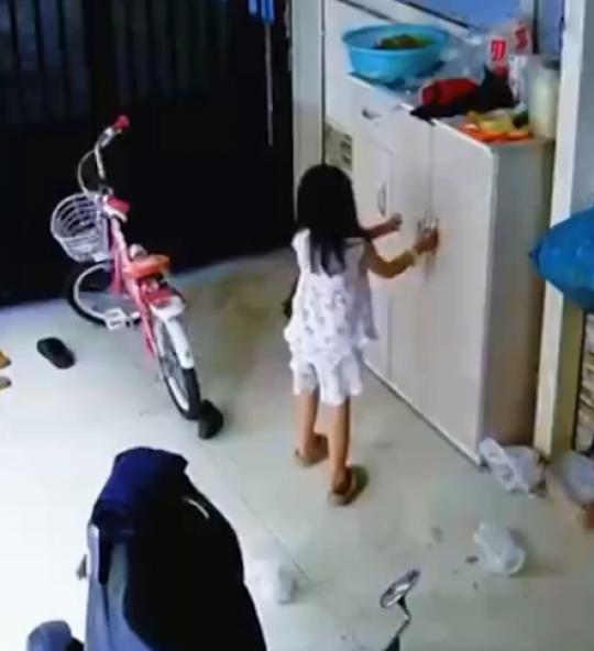 中国で、自宅玄関近くに置かれていたシューズボックスが転倒し、女の子が下敷きになる事故が起きた。