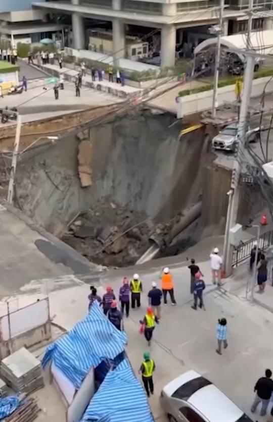 ロイター通信などによると、24日午前7時15分ごろ、バンコクのワチラ大学病院前のサームセーン通り区間で道路全体が陥没した。シンクホールの大きさは縦横それぞれ30メートル、深さは約50メートルに達すると伝えられている。