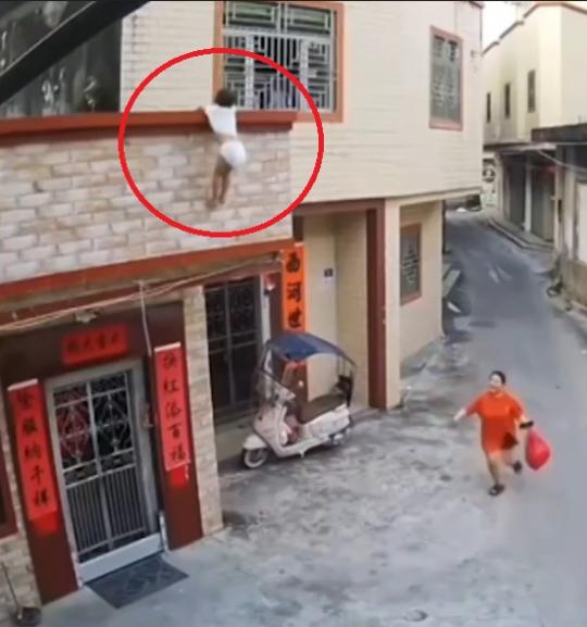 【中国】3歳児が2階ベランダから転落 通りかかった女性が受け止め無事救出